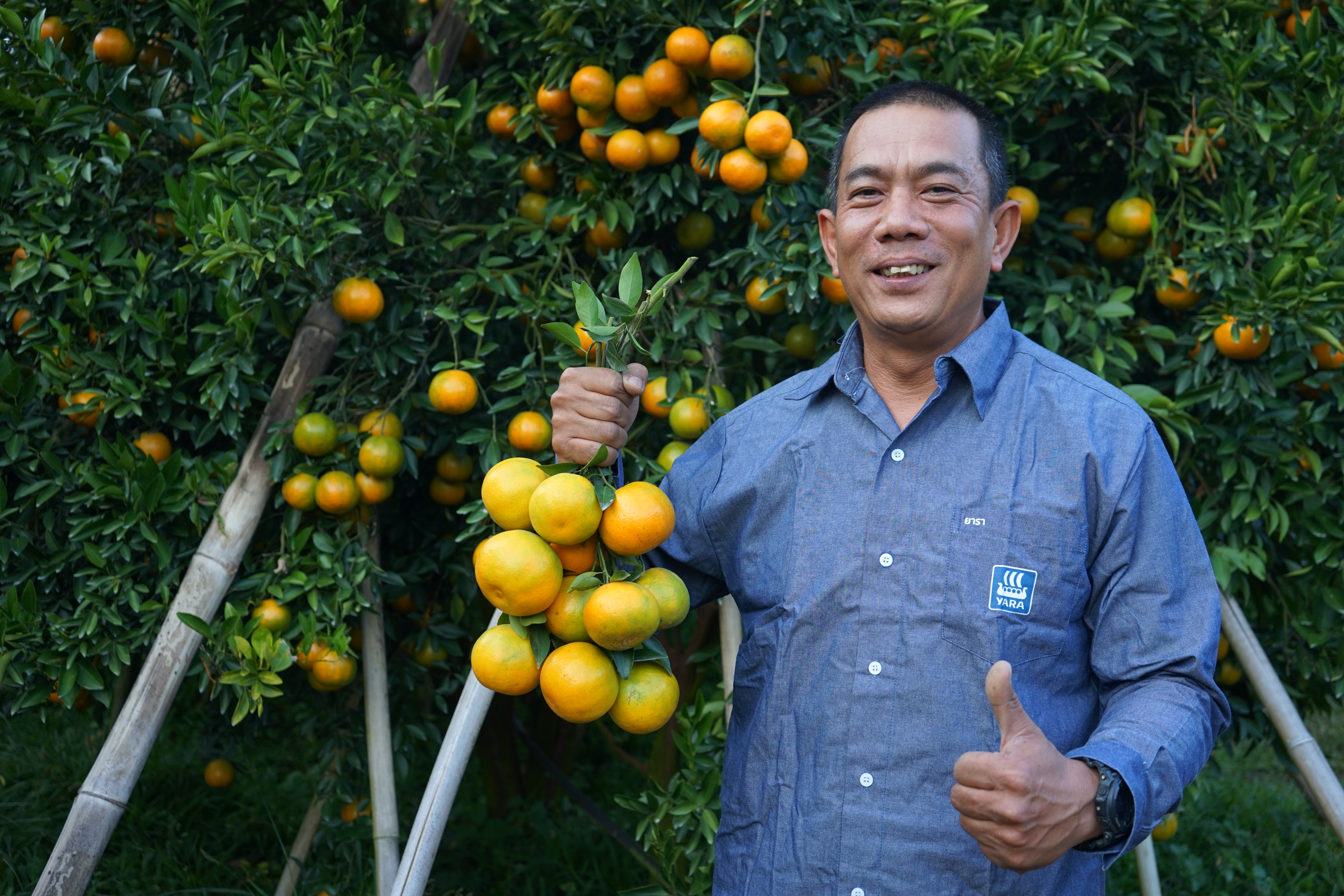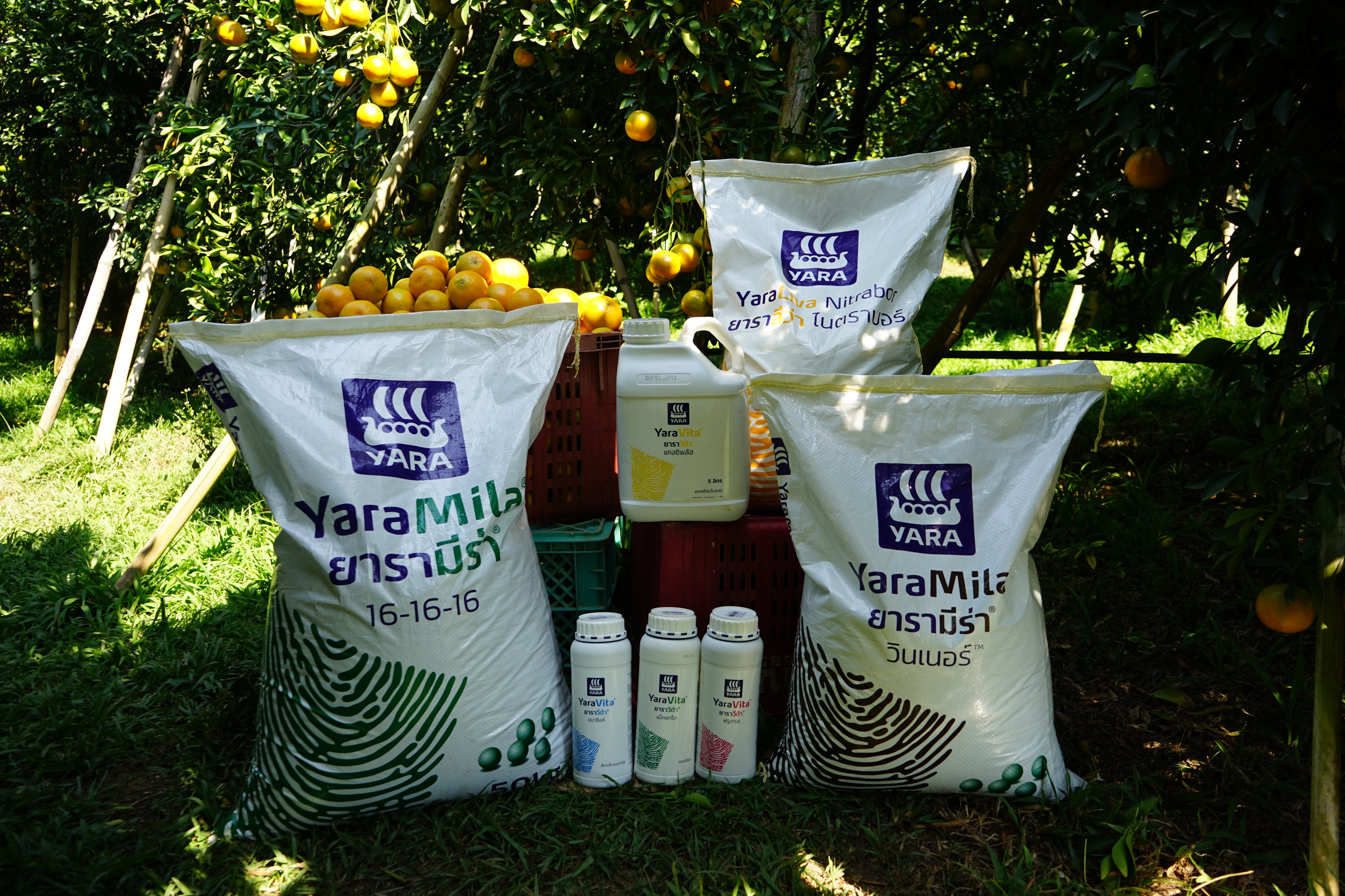 “ก่อนติดดอก ผมจะใส่ปุ๋ย ยารามีร่า วินเนอร์ 14-8-19 ในอัตรา 400 กรัมต่อต้นต่อเดือน ผสมกับปุ๋ย ยาราลีว่า ไนตราบอร์ 15-0-0 ในอัตรา 200 กรัมต่อต้นต่อเดือน โดยปุ๋ย ยารามีร่า วินเนอร์ 14-8-19 มีส่วนผสมของไนโตรเจน ฟอสฟอรัส และโพแทสเซียม ที่ช่วยกระตุ้นให้ลำต้นส้มเติบโตแข็งแรง ทั้งยังมีส่วนช่วยบำรุงรากของต้นส้มให้แข็งแรงด้วย ส่วน ยาราลีว่า ไนตราบอร์ 15-0-0 นั้น เป็นปุ๋ยแคลเซียมไนเตรตที่ละลายน้ำได้ดี ทำให้พืชสามารถนำไปได้ทันทีทางระบบราก จะช่วยให้ต้นส้มแตกใบใหม่ได้ไวขึ้น และผนังลำต้นมีความแข็งแรง ต้านทานโรคและแมลงได้ดียิ่งขึ้นด้วย”