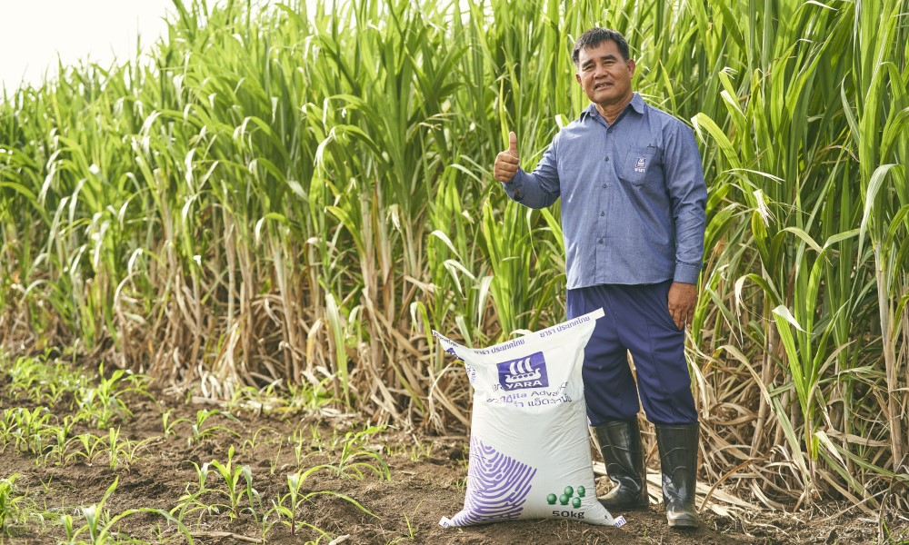 “ตอนช่วงเตรียมดินแรก ๆ ก็จะใส่ปุ๋ยคอก พวกขี้ไก่ ขี้วัวลงไปก่อน พอต้นอ้อยโตขึ้นสูงประมาณหัวเข่าเราก็ใช้ปุ๋ยยารานี่แหละฝังลงไปเลย คือ เรามีเครื่องมือเครื่องจักรครบใช่ไหม เหมือนระเบิดดินนั่นแหละแล้วฝังปุ๋ยยาราลงไปเลย ผมทำให้รากมันลงไปกินข้างล่างใต้ดินมันจะชุ่มกว่ามาก เพื่อน ๆ เกษตรกรมาที่ไร่ เขามาดูเห็นว่าผลผลิตของเราดี ต้นสวย น้ำหนักดี ผมก็แนะนำปุ๋ยยาราตัวนี้ไปลองดู เดี๋ยวนี้ก็ใช้ตามกันหมดแล้ว ”